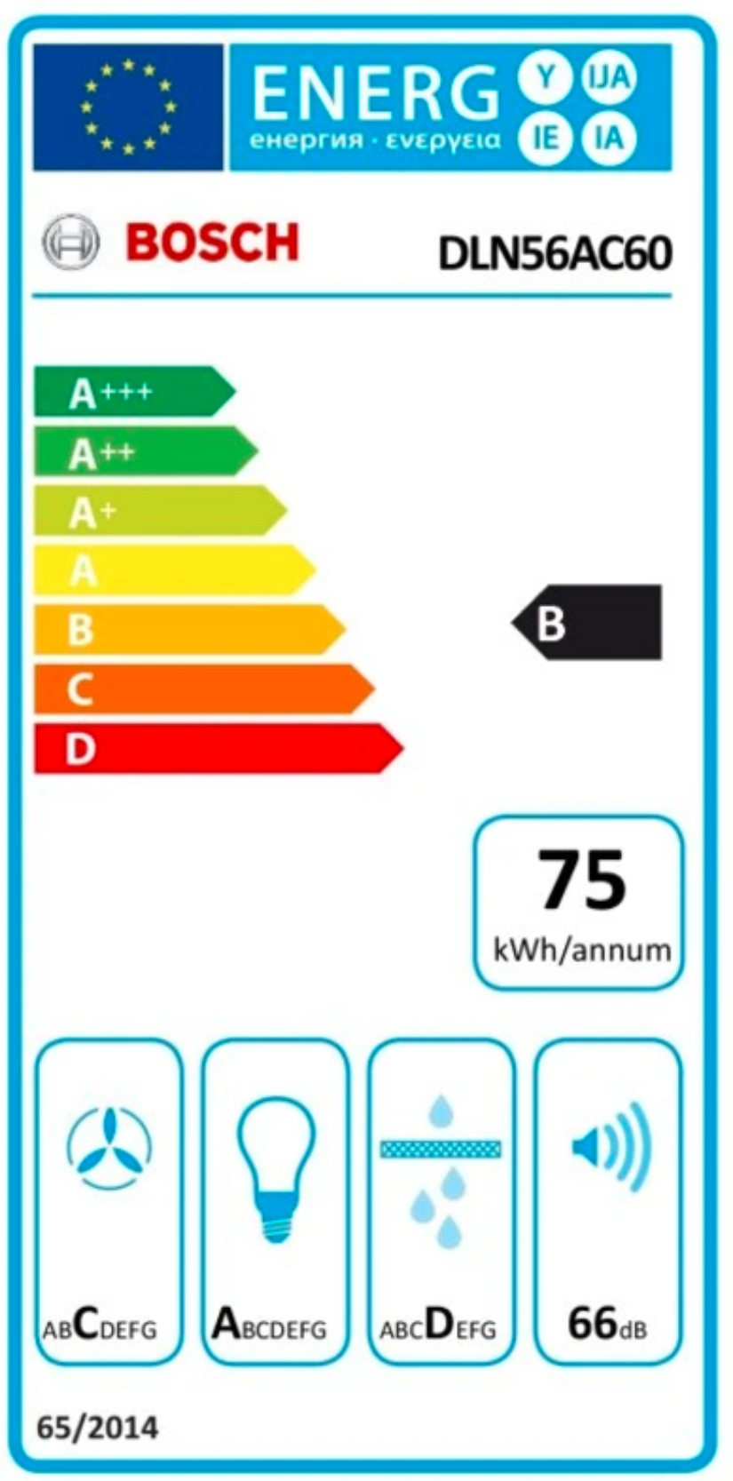 podle norem EN 61591 a EN/IEC 60704-2-13 může odsavač par při odtahu dosáhnout následujících hodnot: stupeň 1: výkon odsávání 295 m3/h; hlučnost 50 dB (A) re1pW stupeň 2: výkon odsávání 445 m3/h; hlučnost 59 dB (A) re1pW stupeň 3: výkon odsávání 570 m3/h; hlučnost 66 dB (A) re1pW intenzivní: výkon odsávání 645 m3/h; hlučnost 68 dB (A) re1pW