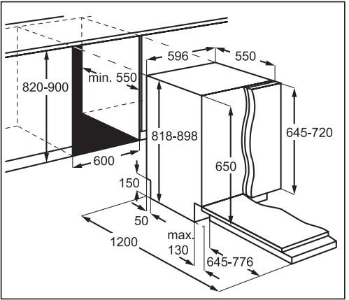 Prostor pro instalaci VxŠxH (mm): 820-900x600x550